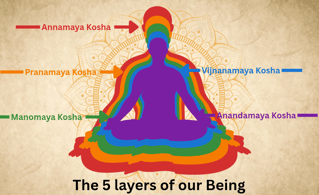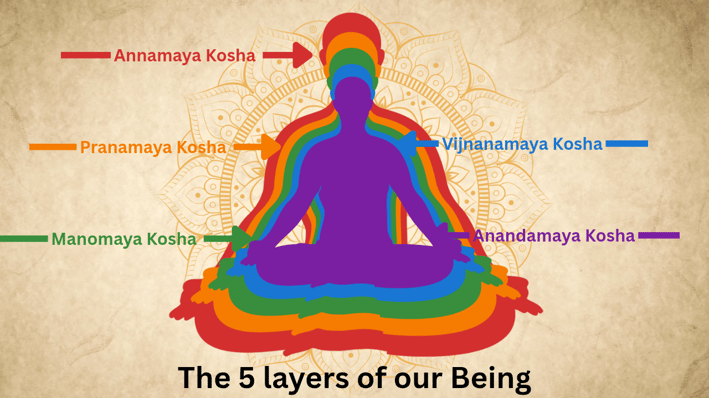 The Yogic sages called these layers Koshas — meaning "sheaths" or "coverings." Each kosha is a part of you: physical, energetic, emotional, intellectual, and spiritual.